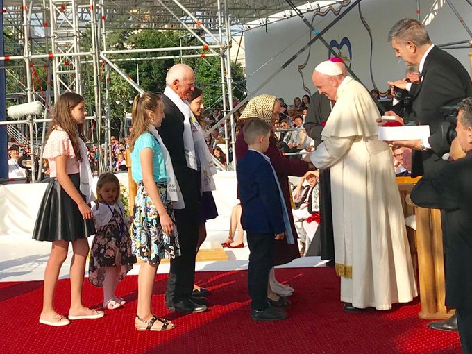 Durante el encuentro mariano con la juventud y las familias en Iasi, Rumanía, el Papa Francisco escuchó el testimonio de un matrimonio católico y sus 11 hijos; de estos últimos, siete decidieron contraer matrimonio y cuatro optaron por la vida religiosa.